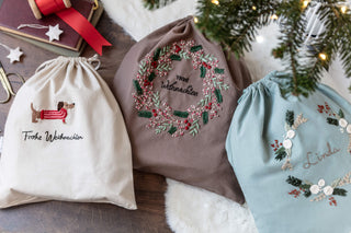 Die Sticktasche gibt es in natur und grün mit 11 wunderschönen Stickgarnen mit denen ihr eure ganz persönlichen Unikate besticken könnt.