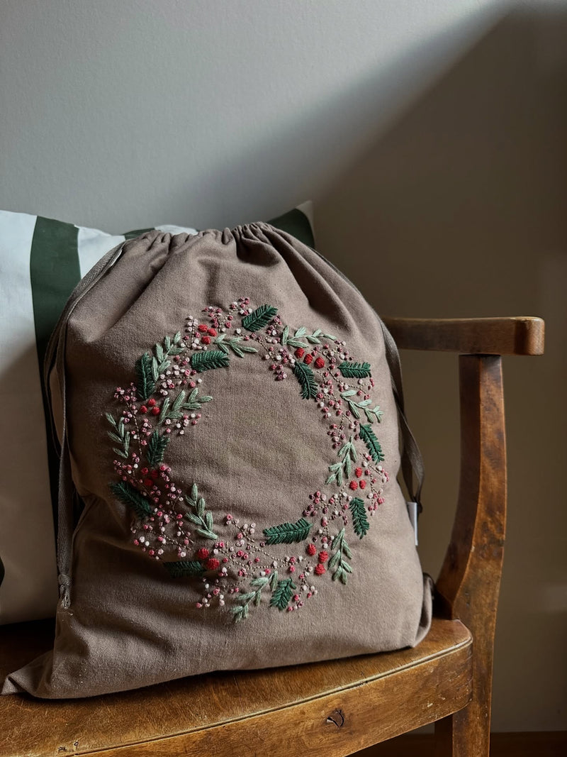 Unser dunkelbraunes Sticksäckchen mit dem rosafarbenen Pfeffer-Design bringt genau dieses Gefühl zurück. Die warme Farbe lässt das Stickmotiv wunderbar leuchten und macht das Säckchen zu einem echten Highlight unter dem Weihnachtsbaum.
